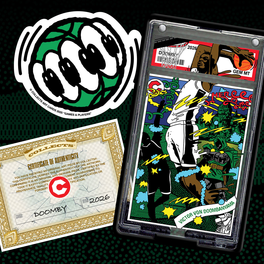 - 2.5″x 3.5″ trading card in a 35pt magnetic case, with header card